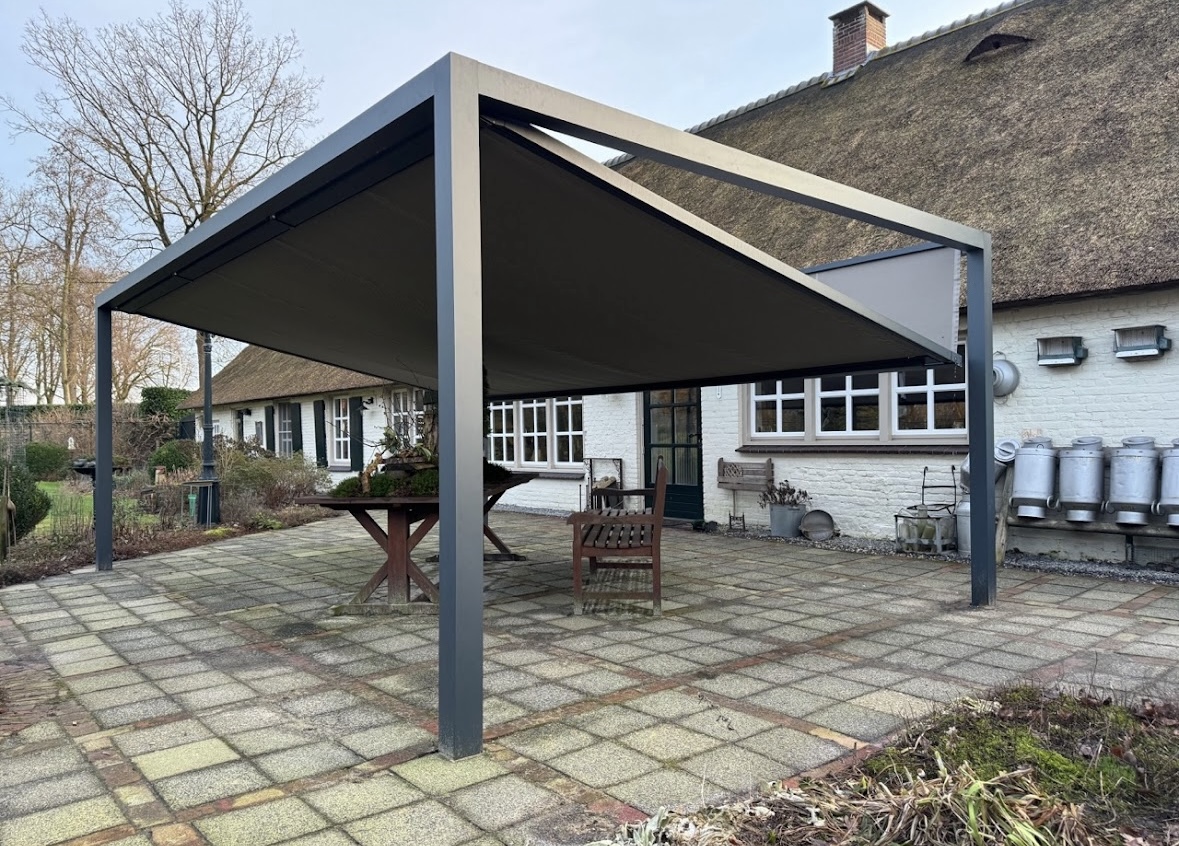 Pergola zonwering biedt een nagenoeg waterdichte oplossing voor het buitenleven, zodat u nog vaker en langer van uw buitenruimte kunt genieten. De zonwering is gemaakt van waterafstotend materiaal en kan worden uitgerust met afvoerkanalen om regenwater af te voeren. Dat gezegd zult u begrijpen dat het basisproduct geen beschutting geeft tegen zijwind of inslagregen. In het geval u product zoekt waar u nog meer beschutting biedt tegen de weersomstandigheden, dan is een tuinkamer (of wel terrasoverkapping waar de voor- en zijkant af te sluiten zijn middels vaste wanden, glaswanden e.d.) plus (onderdakse) zonwering wellicht een betere overweging. Ook hiervoor kunt u bij Luvifem terecht en verwijzen wij u naar de betreffende pagina’s op deze website of onze adviseurs.